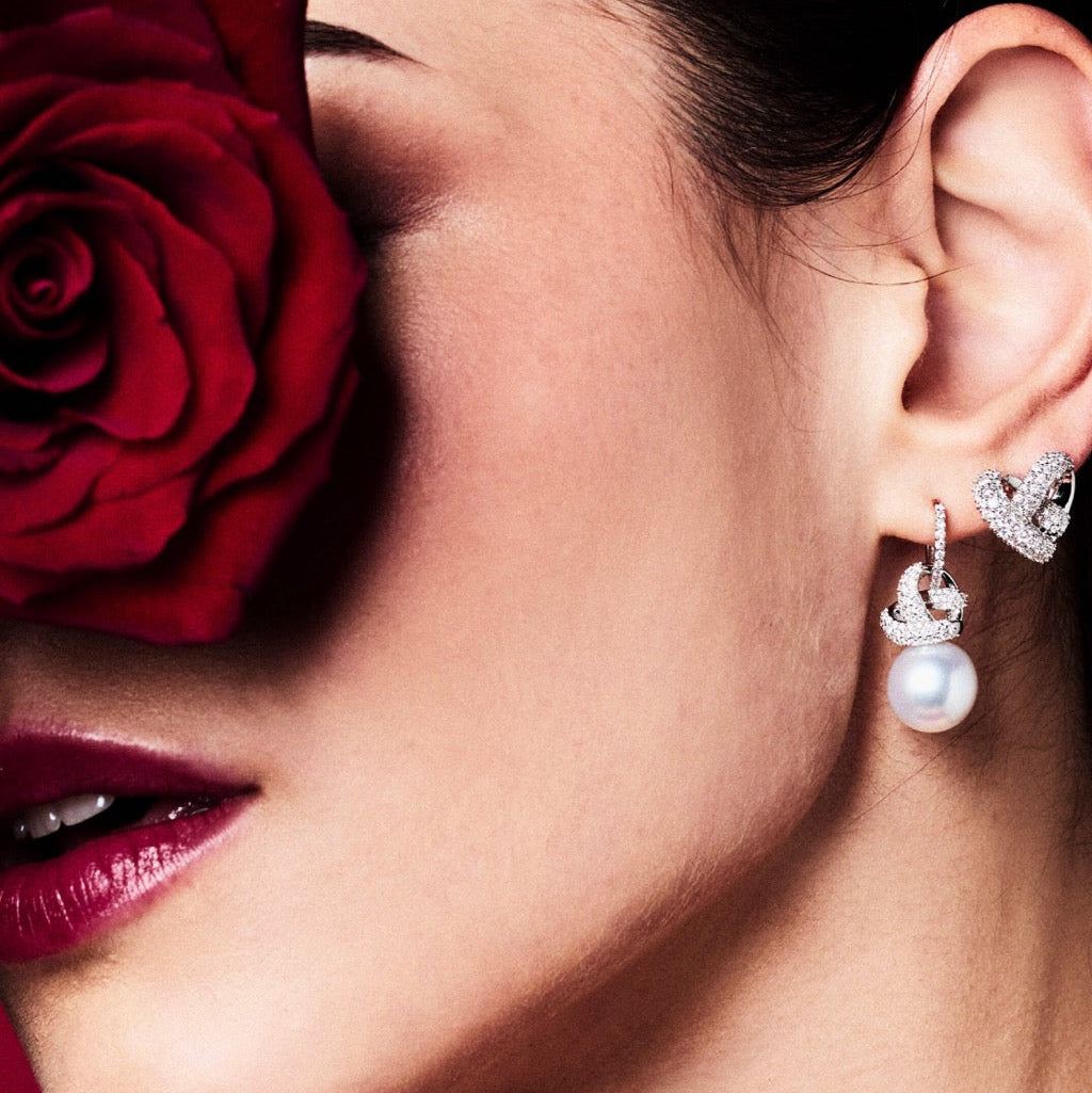 Orecchini Love Knot con perla South Sea e diamanti
