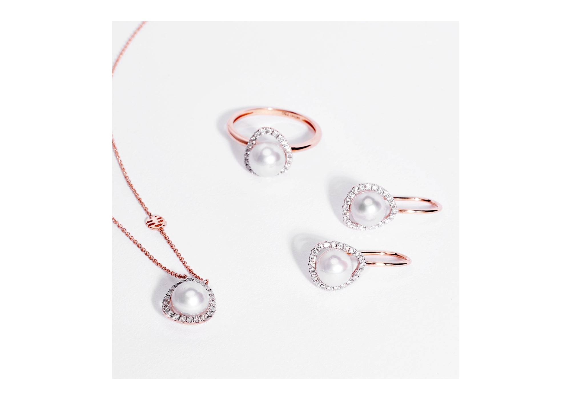 The Vivienne collection by MIMI uses 18k white and rose gold, along with diamonds and Akoya pearls. The soft and light shapes reflect light and harmony, naturally following the movements of the wearer.