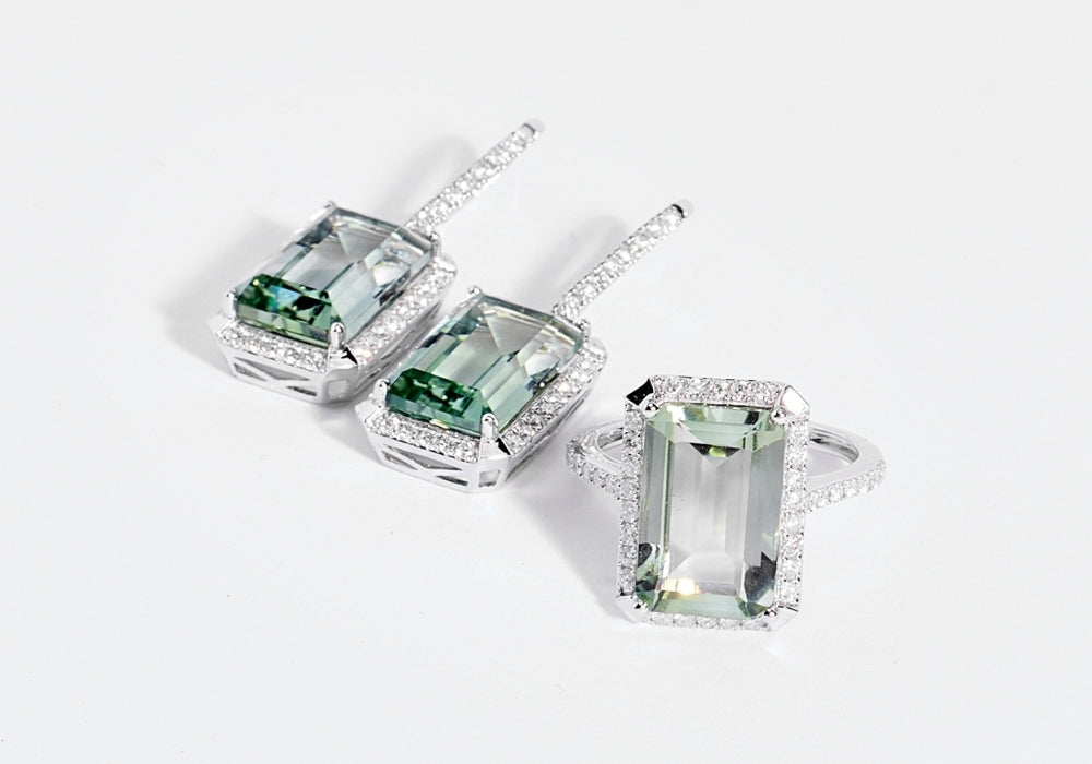 MIMI Orecchini Shanti in oro bianco con prasiolite e diamantiMIMI Orecchini Shanti in oro bianco con prasiolite e diamanti