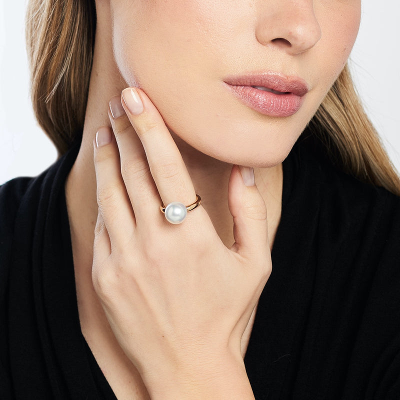 Un design puro in oro e pavé di diamanti che custodisce la perla e il simbolo Ognibene: una firma silenziosa, promessa di gioia e armonia.
